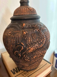Relief-Decorated Red Clay Ginger Jar with Dragon Motif