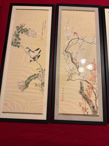 Pair of Framed Chinese Bird and Flower Paintings on Silk