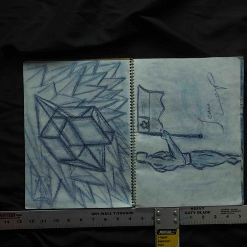Original Blue Crayon and Graphite Spiral-Bound Sketchbook by Jean Larry