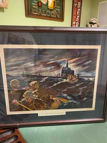 Framed World War II Military Art Print: 'Up From The Sea In Subs'