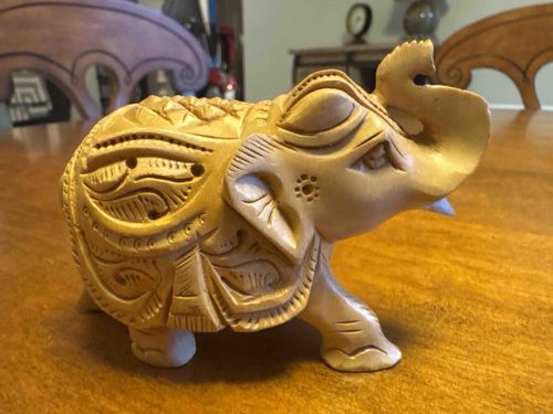Hand-Carved Light Wood Elephant Figurine
