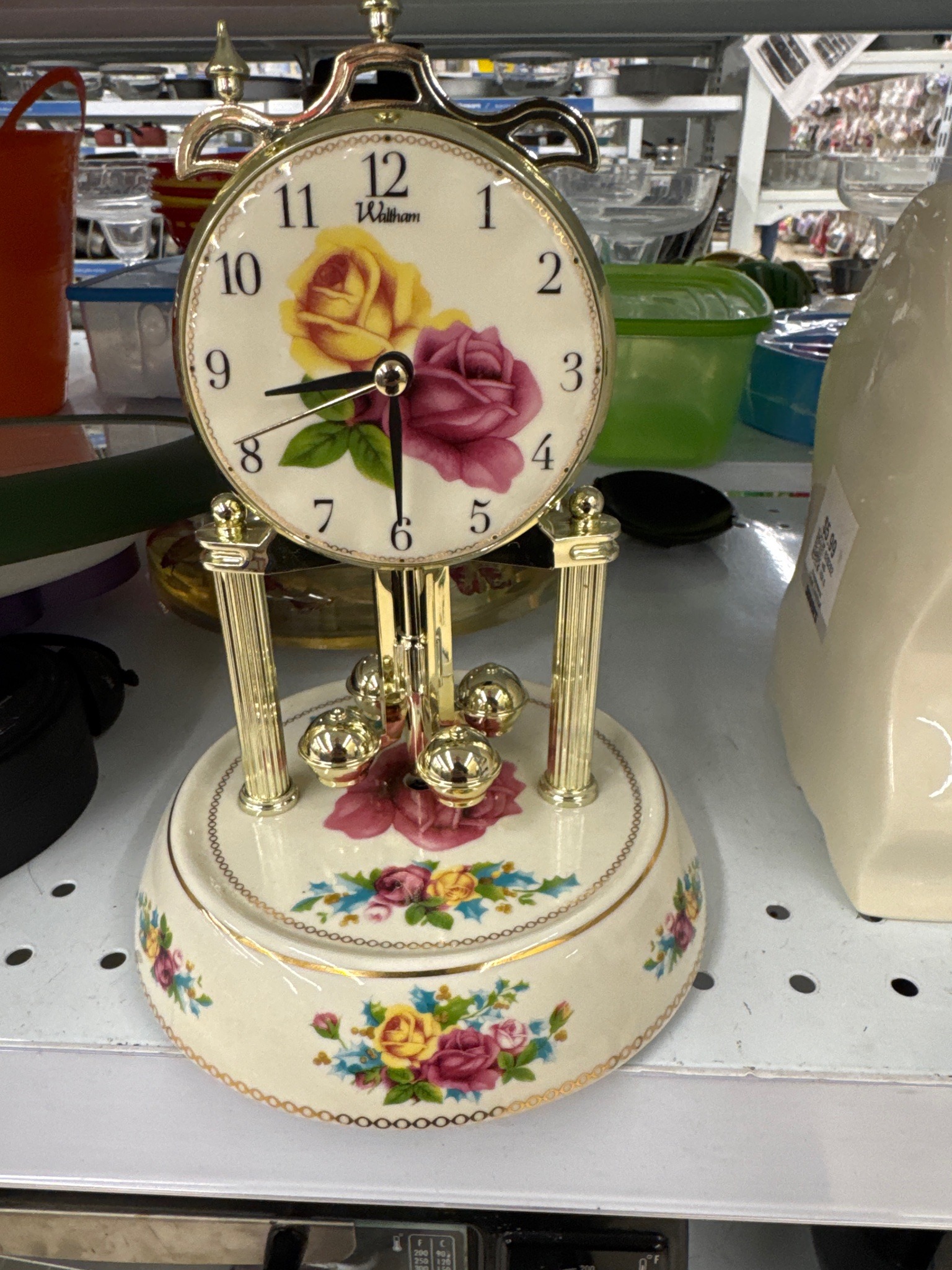 Waltham Floral Anniversary Style Rotating Pendulum Clock