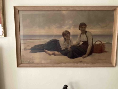 Painting by A. Delobbe in 1885. In family for over 100 years. Tear in canvas lower left corner