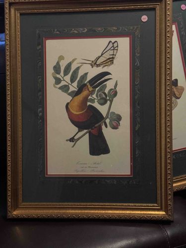 Framed Natural History Illustration of a Toucan and Butterfly