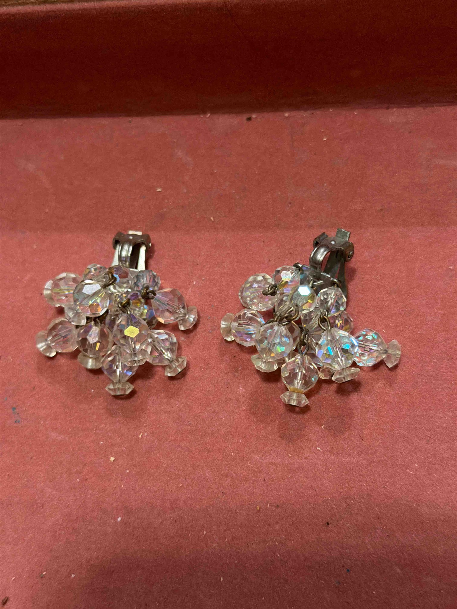 Vintage Aurora Borealis Crystal Cluster Clip-On Earrings