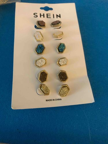 SHEIN 6-Pair Faux Druzy Stud Earring Set