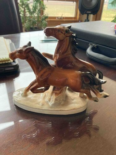 Mid-Century Porcelain Double Horse Galloping Figurine