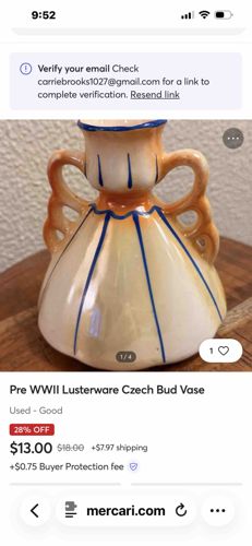 Pre-WWII Czechoslovakian Lusterware Bud Vase