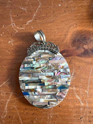 Oval Mosaico Abalone Shell and Sterling Silver Pendant