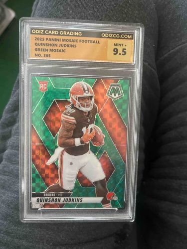 2024 Panini Mosaic Quinshon Judkins Green Mosaic Prizm Rookie Card #365 - ODIZ Graded 9.5 Mint+
