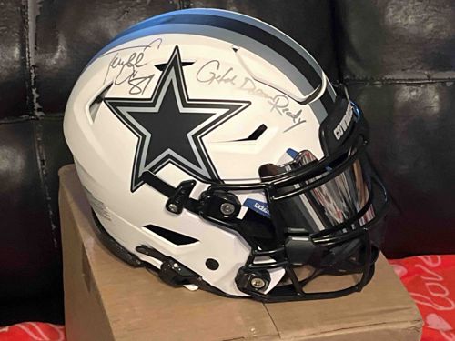 Autographed Terrell Owens Dallas Cowboys Riddell Speed Mini Helmet with 'Get Your Popcorn Ready' Inscription