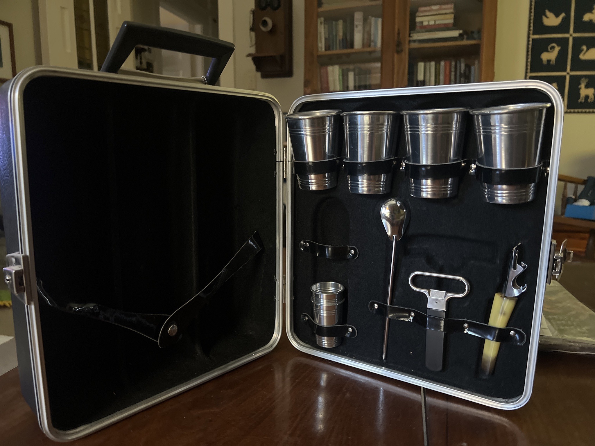 Vintage Mid-Century Travel Bar Kit in Hard-Shell Briefcase