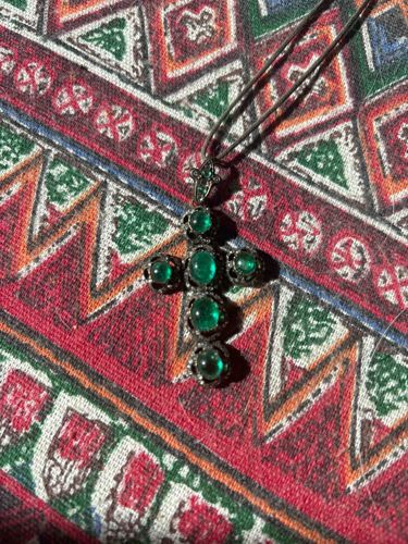 Vintage Emerald-Toned Cabochon Cross Pendant
