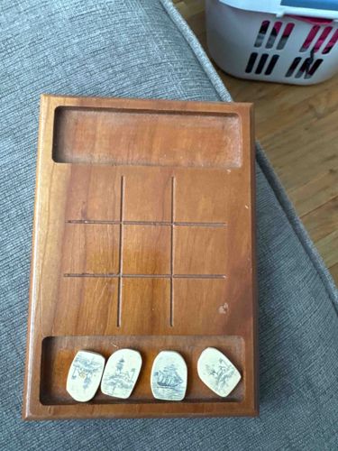 Vintage Wooden Tic-Tac-Toe Set with Scrimshaw-Style Game Pieces
