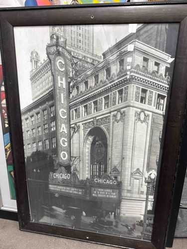 Framed Vintage-Style Photograph of the Chicago Theatre Building