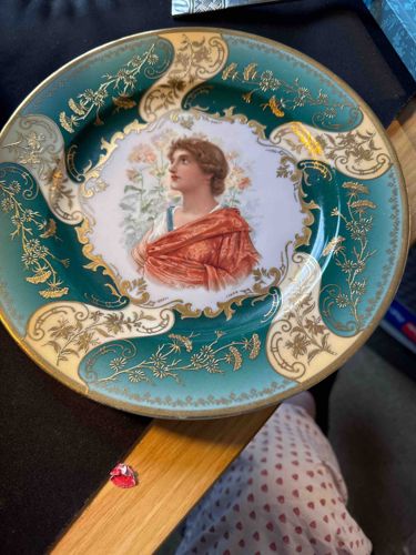 Royal Vienna Style Portrait Plate with Gilded Emerald Border