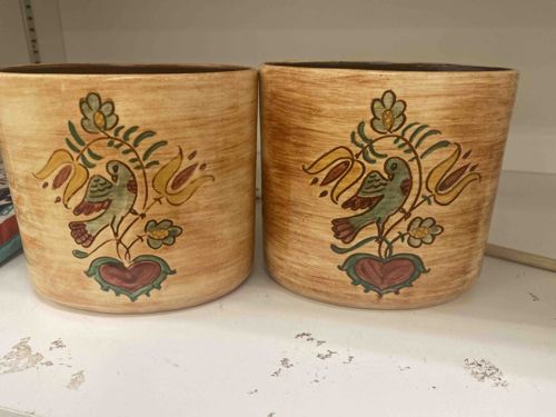 Vintage Pennsylvania Dutch Style Ceramic Planter Pair