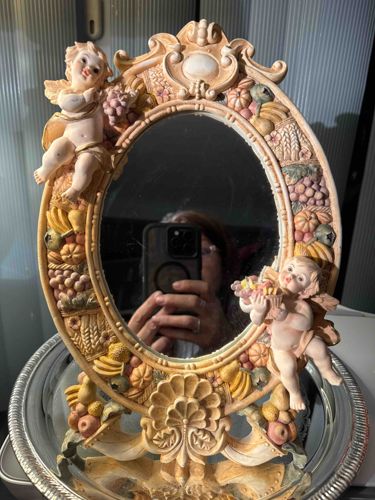 Rococo-Style Resin Cherub and Cornucopia Tabletop Mirror