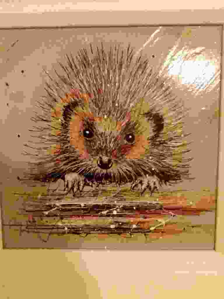 Contemporary Hedgehog Mixed Media Painting