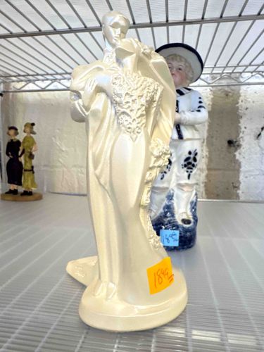 Pearlescent Art Deco Style Wedding Couple Ceramic Figurine