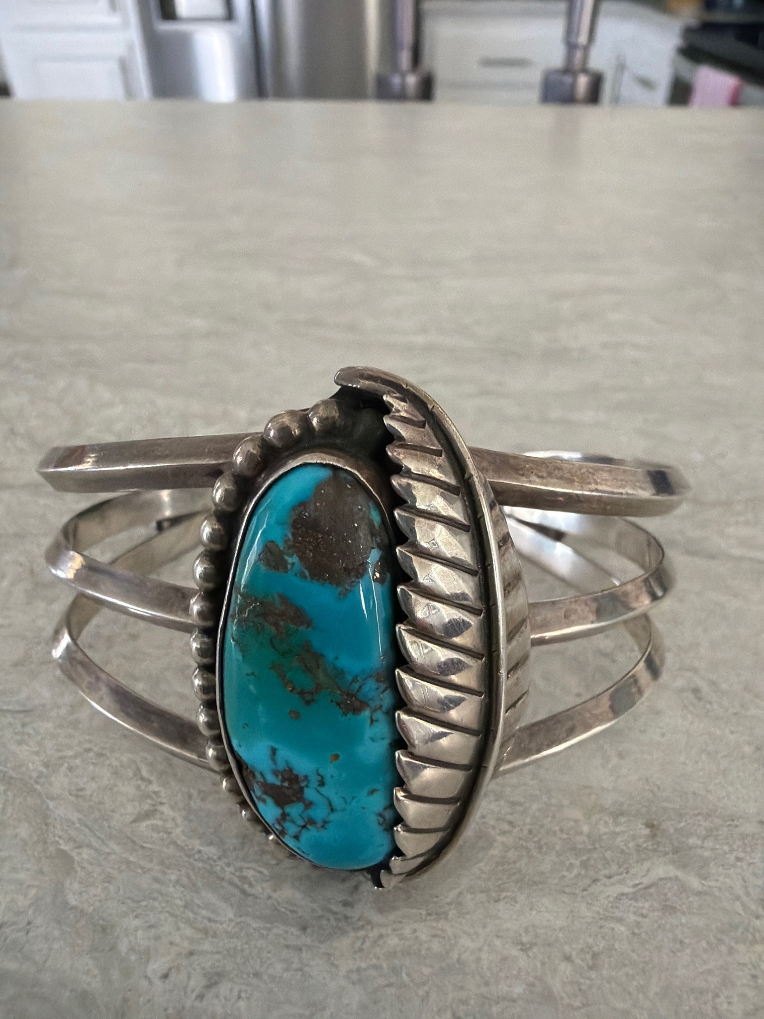 Vintage Native American Sterling Silver and Turquoise Cuff Bracelet
