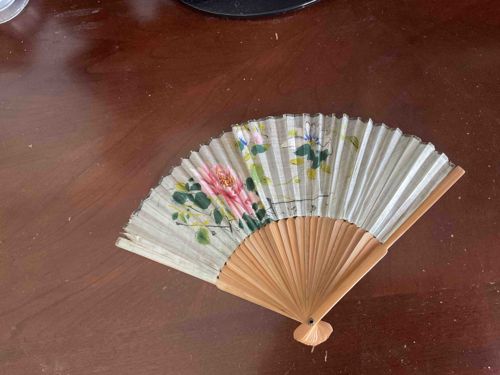 Vintage Japanese Hand-Painted Silk and Bamboo Folding Fan