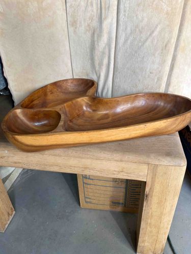 Mid-Century Modern Hand-Carved Monkey Pod Wood Three-Section Divided Serving Tray