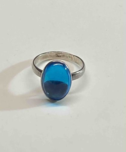 Vintage Sterling Silver Ring with Oval Blue Glass Cabochon