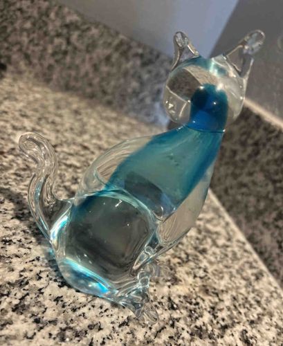 Murano Style Hand-Blown Sommerso Glass Cat Figurine
