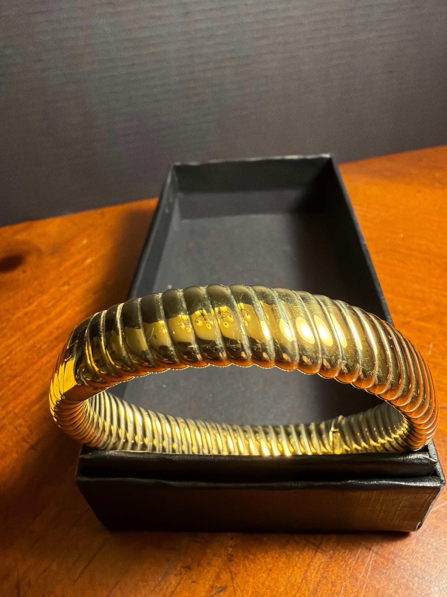 Vintage 18K Gold Ribbed Tubogas Bangle Bracelet