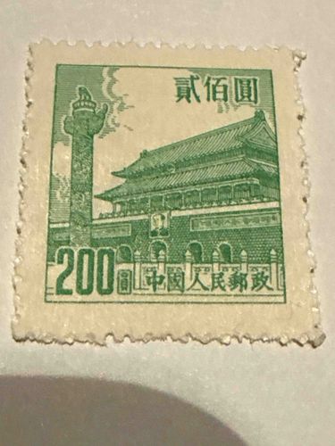1950 People's Republic of China Tiananmen Square 200 Yuan Green Postage Stamp