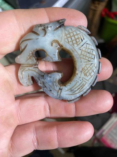 Carved Nephrite Jade Dragon Pendent in Archaic Style