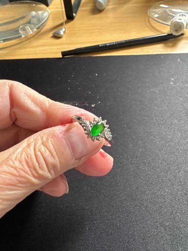Emerald and Diamond Halo Cluster Ring