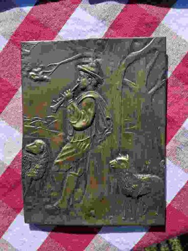 Embossed Brass Shepherd Relief Plaque
