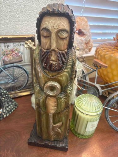 Carved Wooden Figurine of Saint Peter Holding the Key to Heaven