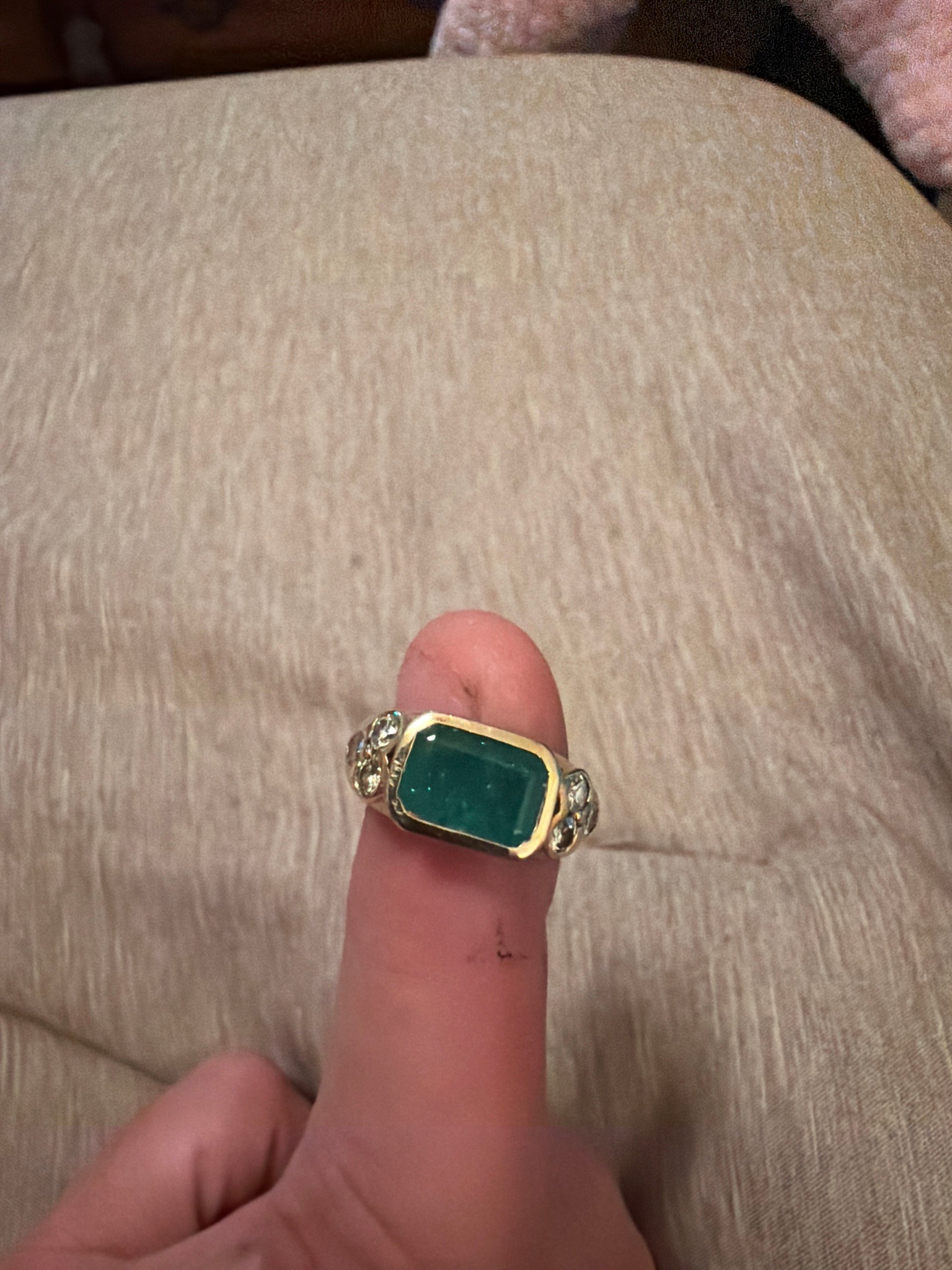Rectangular Emerald and Diamond Ring in Yellow Gold