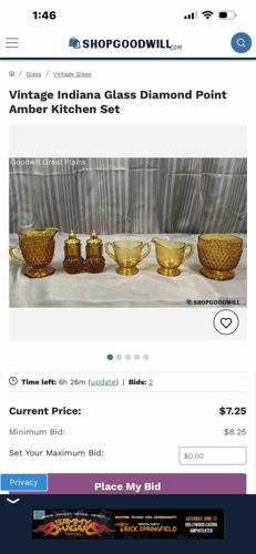 Vintage Indiana Glass Diamond Point Amber Kitchen Set