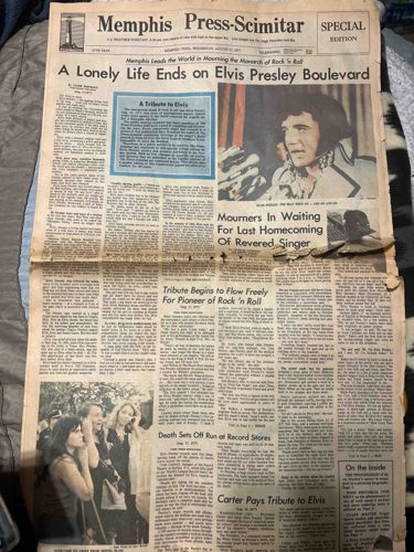 Memphis Press-Scimitar August 17, 1977 Memphis leads the world in morning the monarch of rock ‘n’ roll