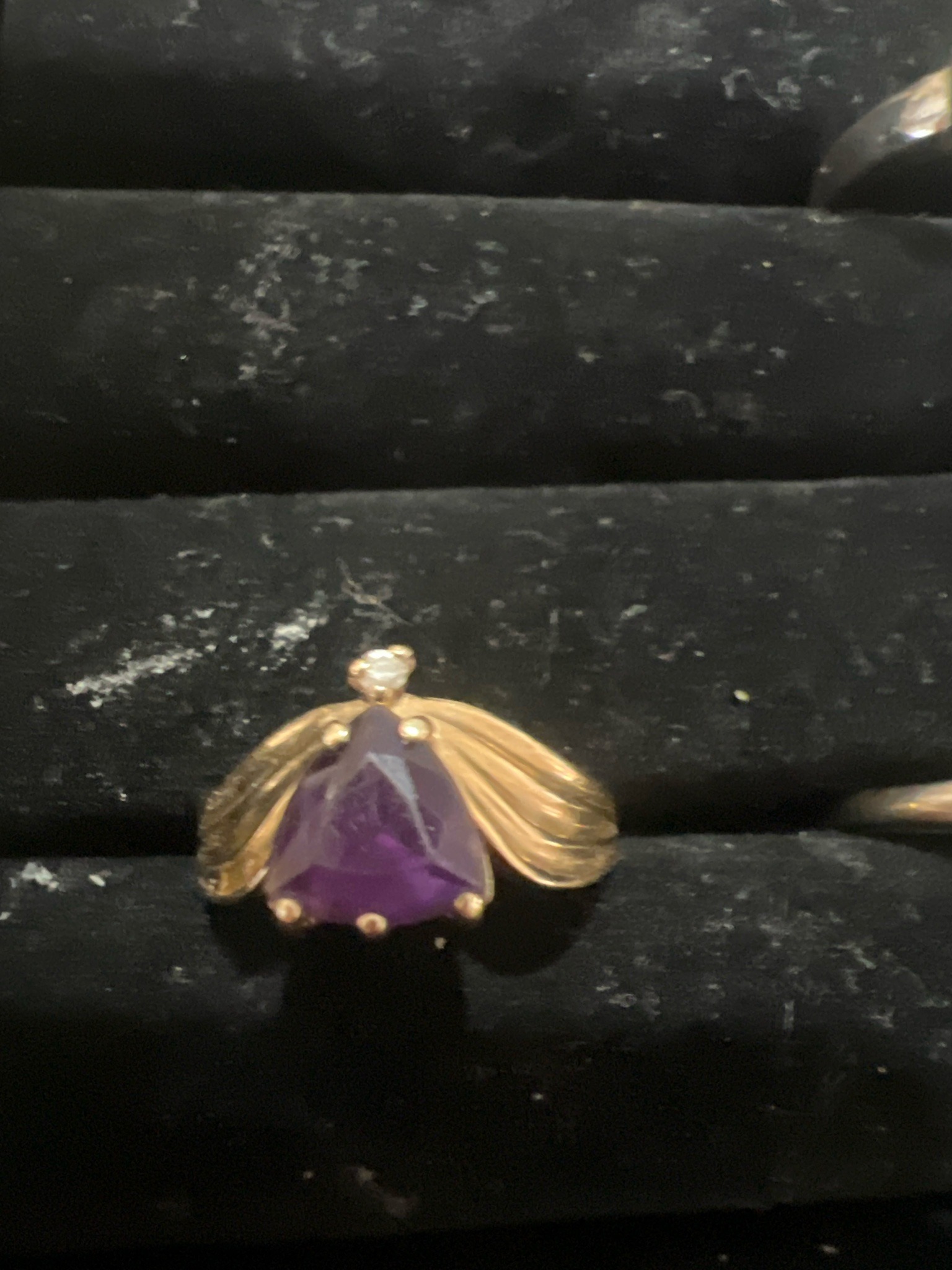 Trillion-Cut Amethyst and Diamond Yellow Gold Ring