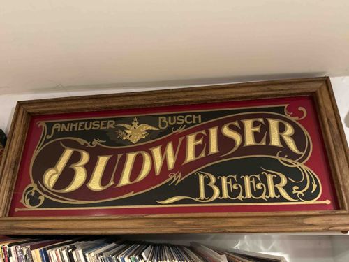 Framed Budweiser Beer Gläss-Malkunst Reverse Painted Glass Sign