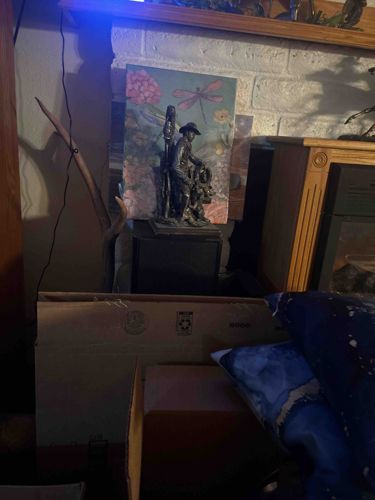 This item is a detailed bronze-finished figural statue depicting a Western-themed scene, likely cast in either bronze or a resin-based cold-cast bronze material. The figure features a cowboy leaning against a structural element, possibly a fence or a utility pole, and is accompanied by a faithful dog at his side. The man is depicted wearing classic Western attire, including a wide-brimmed hat, a collared vest, and trousers, suggesting a 19th or early 20th-century American Frontier style. The statue is anchored to a tiered rectangular base, which provides stability and enhances its aesthetic presentation. The piece displays a dark, aged patina with metallic highlights that emphasize the texture of the clothing and the dog's fur, indicating a focus on realism. There is noticeable dust accumulation in the recessed areas, which is common for decorative items of this age, but the overall structure appears intact with no visible major chips or fractures. Based on the style and casting method, this appears to be a late 20th-century commemorative or decorative sculpture, often found in 'Western Americana' art collections. The craftsmanship displays a high level of detail in the character's posture and facial expression, suggesting it may be a mass-produced but high-quality collectible or an artist-signed piece from a regional gallery.
