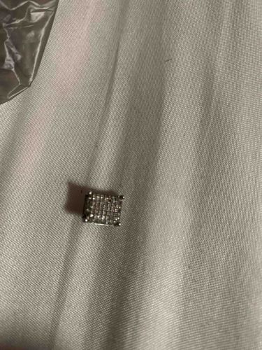 This item is a single square-shaped stud earring featuring a micropavé grid of small, clear accent stones, likely cubic zirconia or small low-grade diamonds, set into a silver-toned metal mounting. The earring face is constructed with four corner prongs holding the cluster in place. The metal appears to be white gold, sterling silver, or a plated base metal, showing some signs of tarnish or wear on the edges. Notably, the item is described as 'broken,' and the image shows only the decorative head of the earring without a visible post or butterfly backing, indicating a structural failure where the post joined the setting. The style is a contemporary urban or 'iced out' aesthetic, typical of mass-produced jewelry from the late 20th to early 21st century. The craftsmanship is standard commercial quality, with a dense grid pattern designed to maximize light reflection. There are no clearly visible maker's marks or hallmarks in the provided view, which often suggests a generic manufacturer. The overall condition is poor due to the missing attachment post, which renders the piece non-functional as jewelry unless repaired.