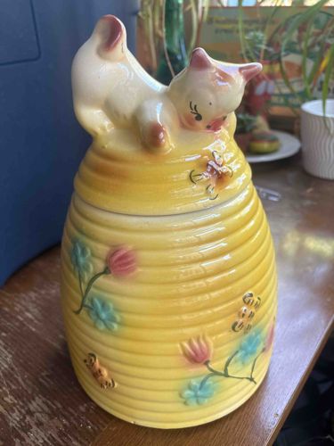 Vintage American Bisque Kitten on Beehive Cookie Jar