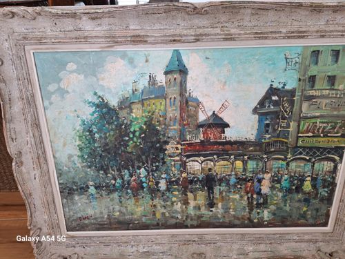 Mid-Century Impressionist Oil Painting of the Moulin Rouge, Signed 'Burnett'
