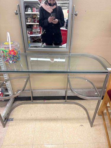 Modern Glass and Brushed Metal Vanity Desk with Mirror