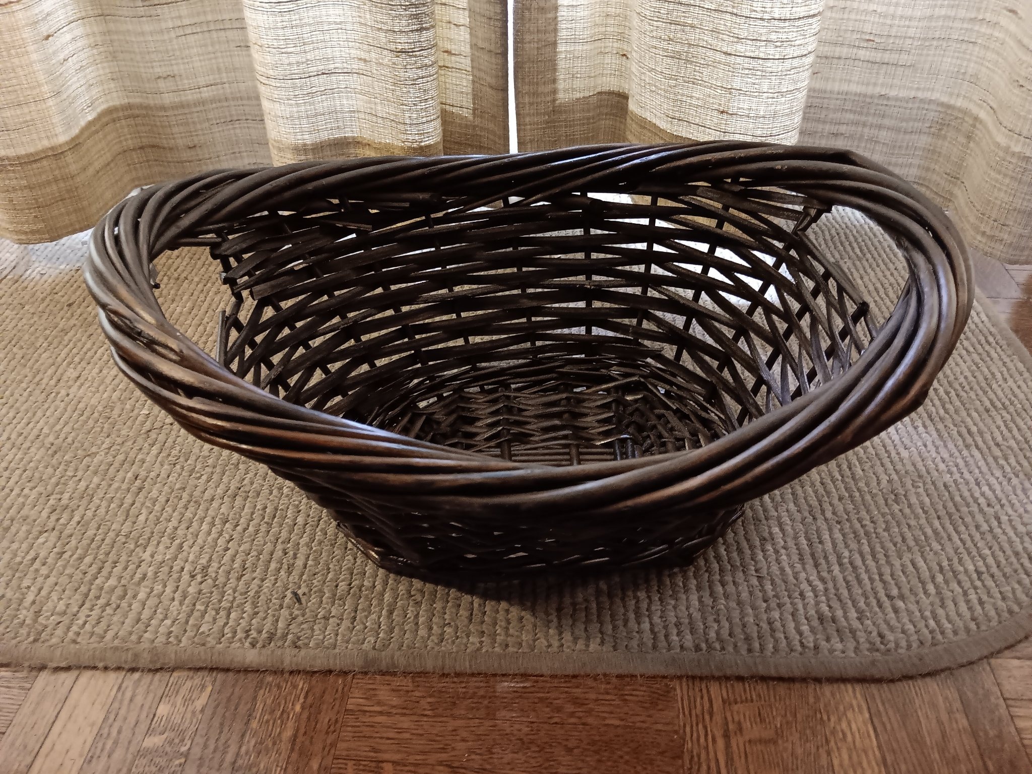 Large Dark-Stained Woven Willow Wicker Laundry or Log Basket