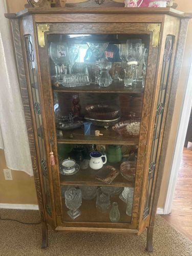 Antique Quarter-Sawn Oak Leaded Glass Curio Cabinet