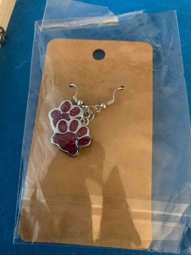 Glittery Pink Paw Print Dangle Earrings