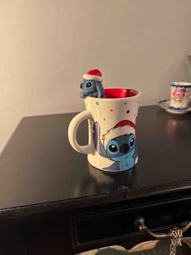 Disney Lilo & Stitch Christmas Ceramic Mug with Figural Spoon