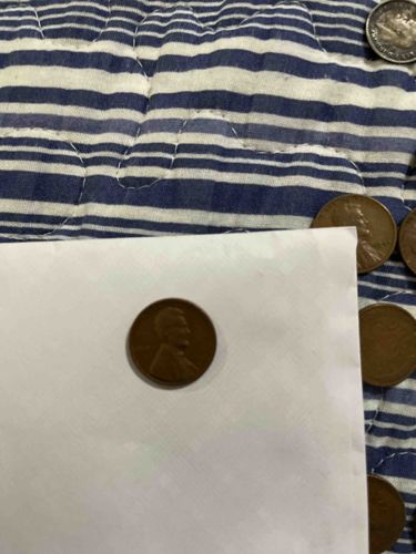 This item is a United States Lincoln cent, commonly known as a 'Wheat Cent' due to the design on the reverse side (not fully visible here, but inferred from the obverse type and era). The coin features the profile of Abraham Lincoln on the obverse, a design created by Victor David Brenner which has been in use since 1909. Physically, the coin is composed of a copper alloy, typically 95% copper and 5% tin and zinc for specimens minted before 1943 or after 1946. It measures 19.05 mm in diameter. The color is a deep, circulated chocolate brown, indicating significant oxidation and handling over several decades. The condition of the specimen shown in the center foreground appears to be in 'Circulated' or 'Very Good' to 'Fine' condition, with notable wear on the high points of Lincoln's hair and clothing. The strike appears standard for a business strike. While a specific date and mint mark are not clearly legible in this photograph, the profile and material suggest it was minted between 1909 and 1958. There is a visible patina and minor surface abrasions consistent with long-term circulation. The surrounding coins include other similar cents and a Roosevelt dime in the upper right, which is silver in color and likely dates from 1946 to the present.